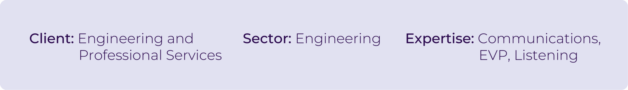 Our client, a global engineering and professional services company, had grown rapidly through acquisition, creating differing levels of engagement and inconsistencies in the employee experience across regions.
