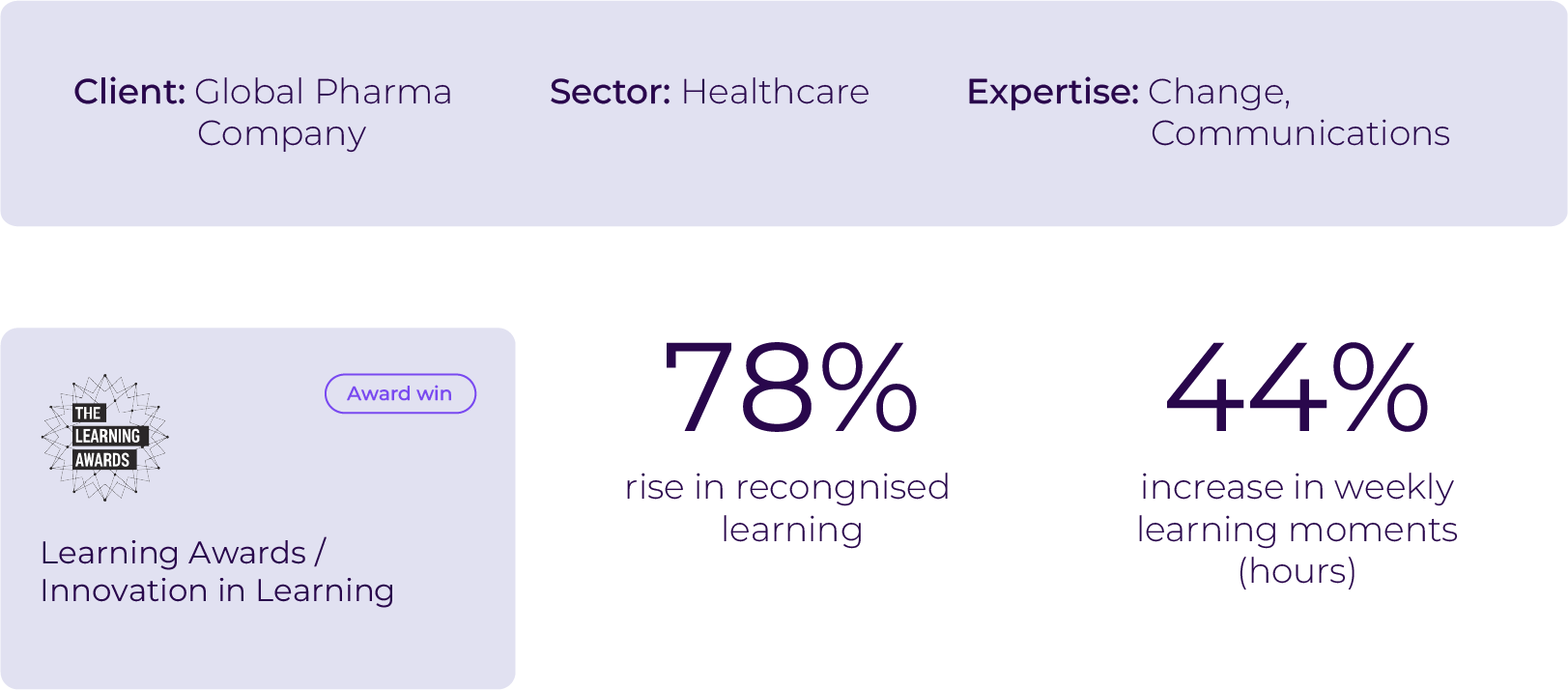 We helped a global pharma leader embed lifelong learning across 70,000 employees – driving a 78% rise in recognised learning moments by boosting curiosity, collaboration and bravery.